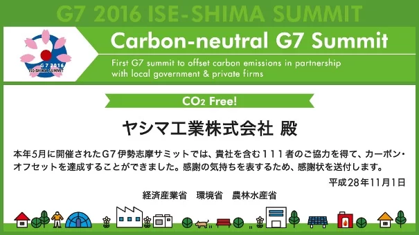 「G7伊勢志摩サミット」カーボン・オフセットの取り組みへの協力のお知らせ
